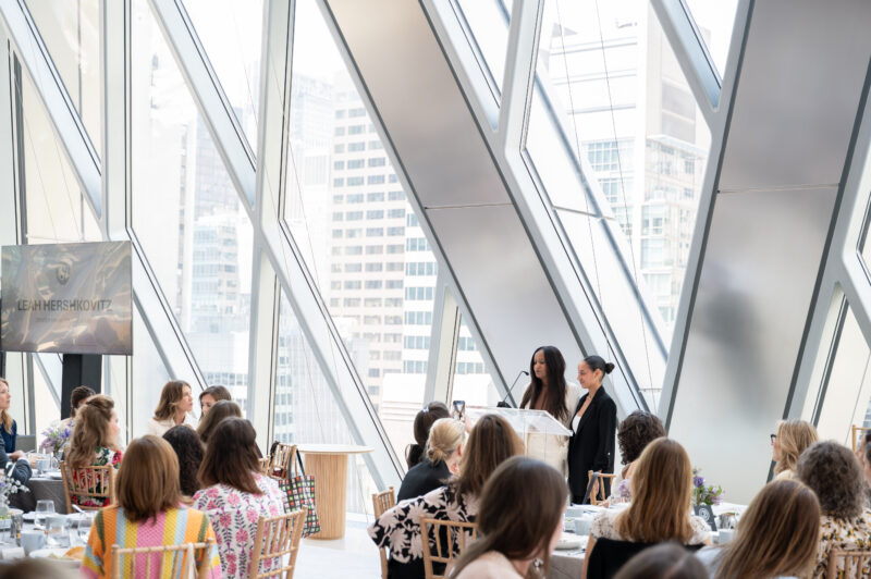 Leah Hershkovitz, the manager of the Israel Tennis and Education Centers’ Arad branch, speaks at ITEC Foundation's women's luncheon in Manhattan on April 14, 2026.