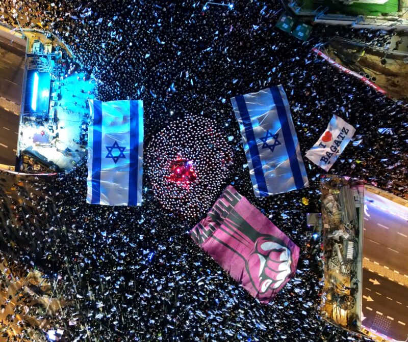 An aerial image of a March 2023 protest in Tel Aviv against proposed judicial reform.
