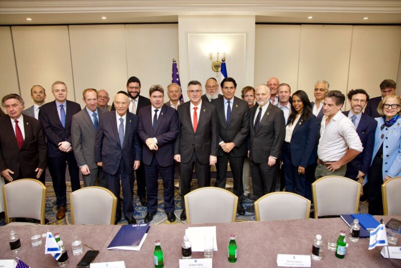 Israeli Foreign Minister Gideon Sa’ar met with some two dozen American Jewish leaders in New York City on Tuesday, briefing them on developments in Israel and hearing their concerns, ahead of a speech in the United Nations about the plight of Israeli hostages being held in Gaza, participants told eJewishPhilanthropy.