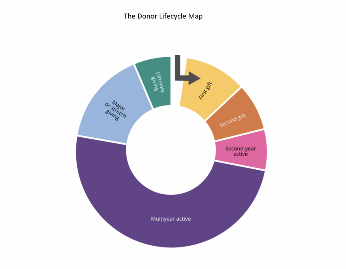 Many years ago, I recommended that development professionals pay attention to a donor’s position on the Donor Lifecycle Map and create tools that can be applied to the personalization process. For example, all first-time donors could be thanked for an “initial gift.” If gift size is important, then it can be used as a mechanism to sort first-time or other donors in terms of additional thank-you tools such as a telephone call.