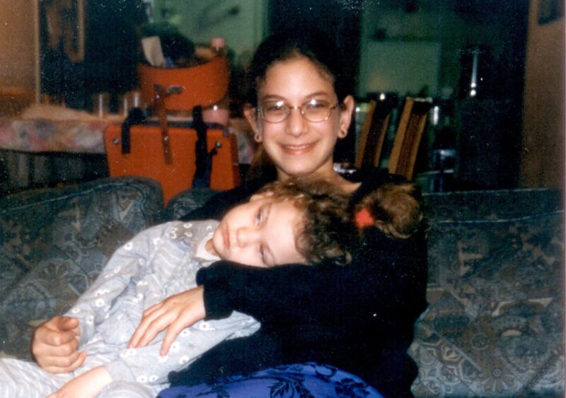 Malki Roth embraces her younger sister Haya in a family photo from 1996, when Malki was 11 years old. Haya is blind and profoundly disabled, their father says, and "Malki adored her."