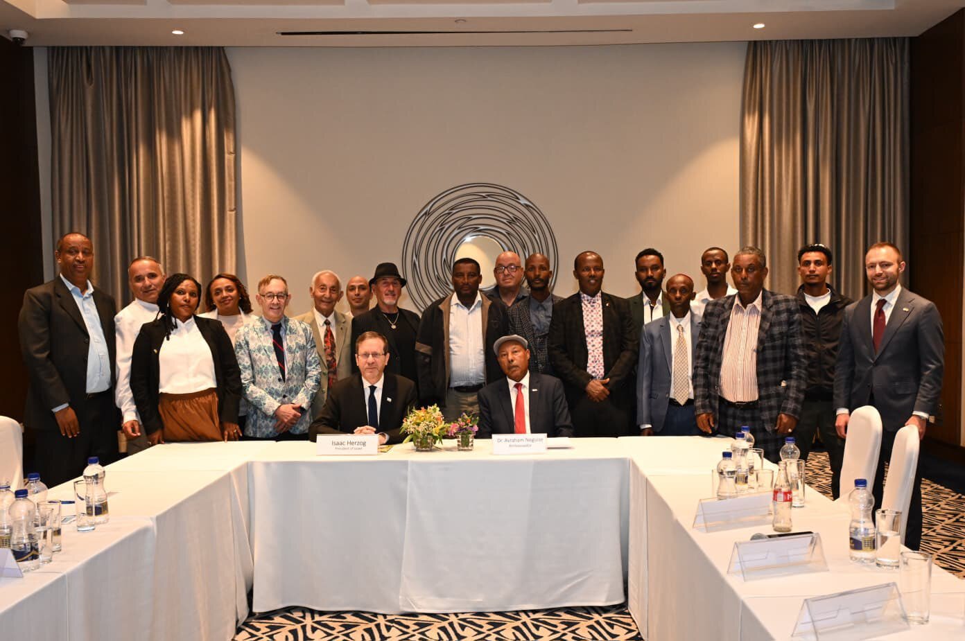 Israeli President Isaac Herzog meets yesterday with the local Jewish community in Ethiopia during a visit to the country.