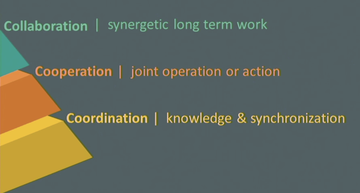 The ‘effective collaboration analysis model’: “We start with value, the shared ‘why’ that makes working together worthwhile. Then we give that value structure: clear roles, decision-making processes and simple mechanisms that make joint work doable. We invest in relationships — trust, shared language and dialogue that keep diverse partners at the table — and we embed commitment and implementation — action items, follow-through and institutionalized practice that turn intent into operating routines. When these elements rise together, communities and organizations move from coordination (information sharing) to cooperation (joint activities) and ultimately to collaboration — co-owned strategy and outcomes with shared accountability.”